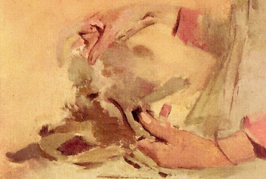 Depois atraem-me os detalhes habituais: a Virgem junto de uma mesa com livros, evocando a Bíblia, estando um fechado e outro aberto - referindo-se talvez ao Velho e ao Novo Testamento. Entre o anjo e a Virgem está uma jarra com lírios, lembrando a pureza de Maria.