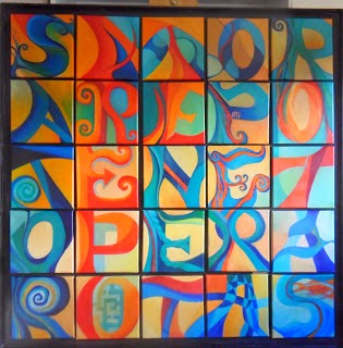 E, por fim, usando letras, a minha mãe, fez recentemente uma pintura com um quadrado SATOR, sendo a frase completa de SATOR AREPO TENET OPERA ROTAS possivelmente traduzida por: «O Criador, autor de todas as coisas, mantém com destreza as suas próprias obras».